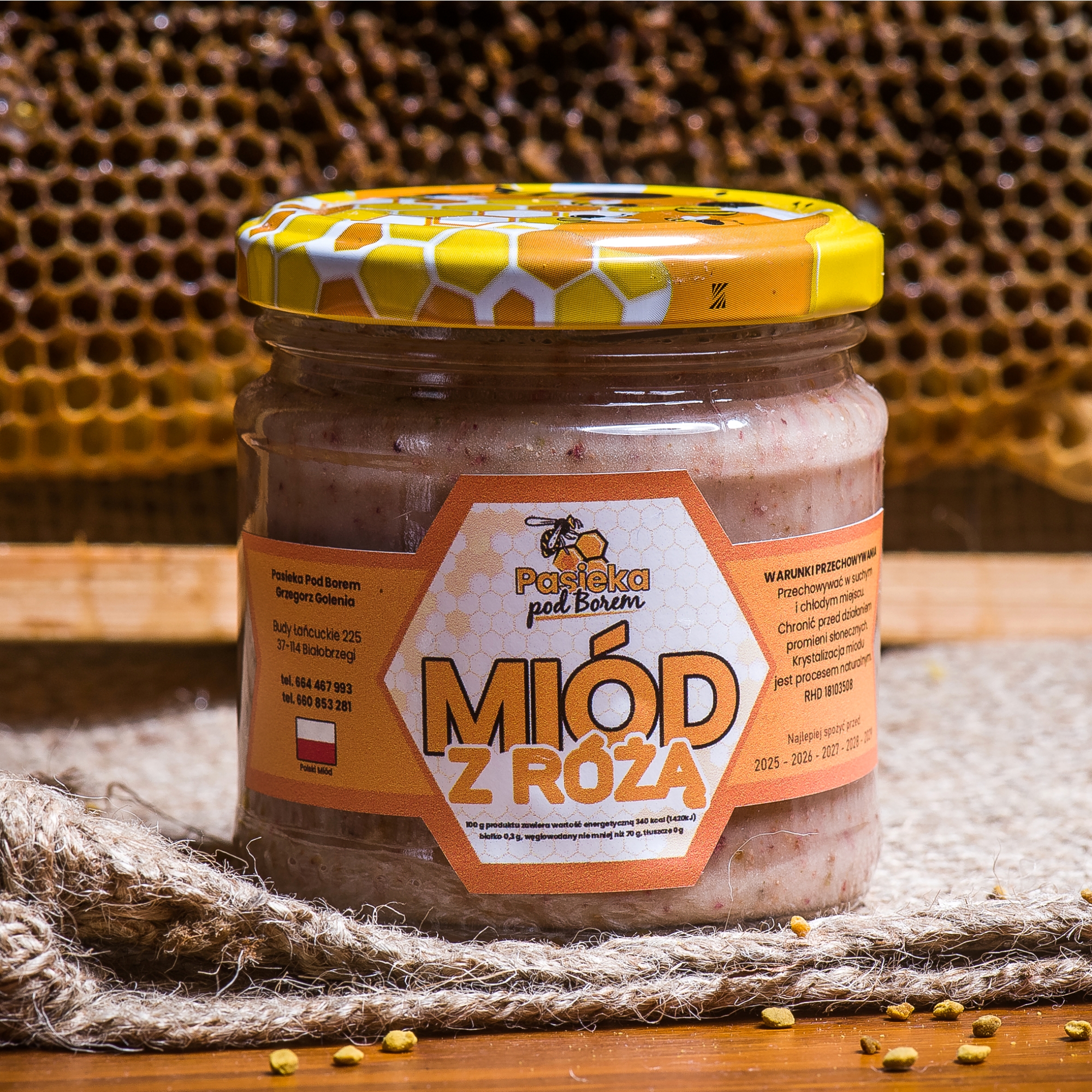 - Naturalny skład: Nasz miód nie zawiera żadnych sztucznych dodatków, konserwantów ani ulepszaczy smaku. Jest to produkt w 100% naturalny, co czyni go idealnym dla osób szukających zdrowej i pysznej alternatywy dla cukru.